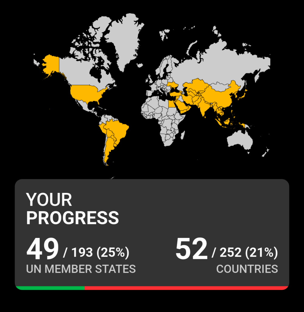 2026年2月現在の訪問済国数は49。
